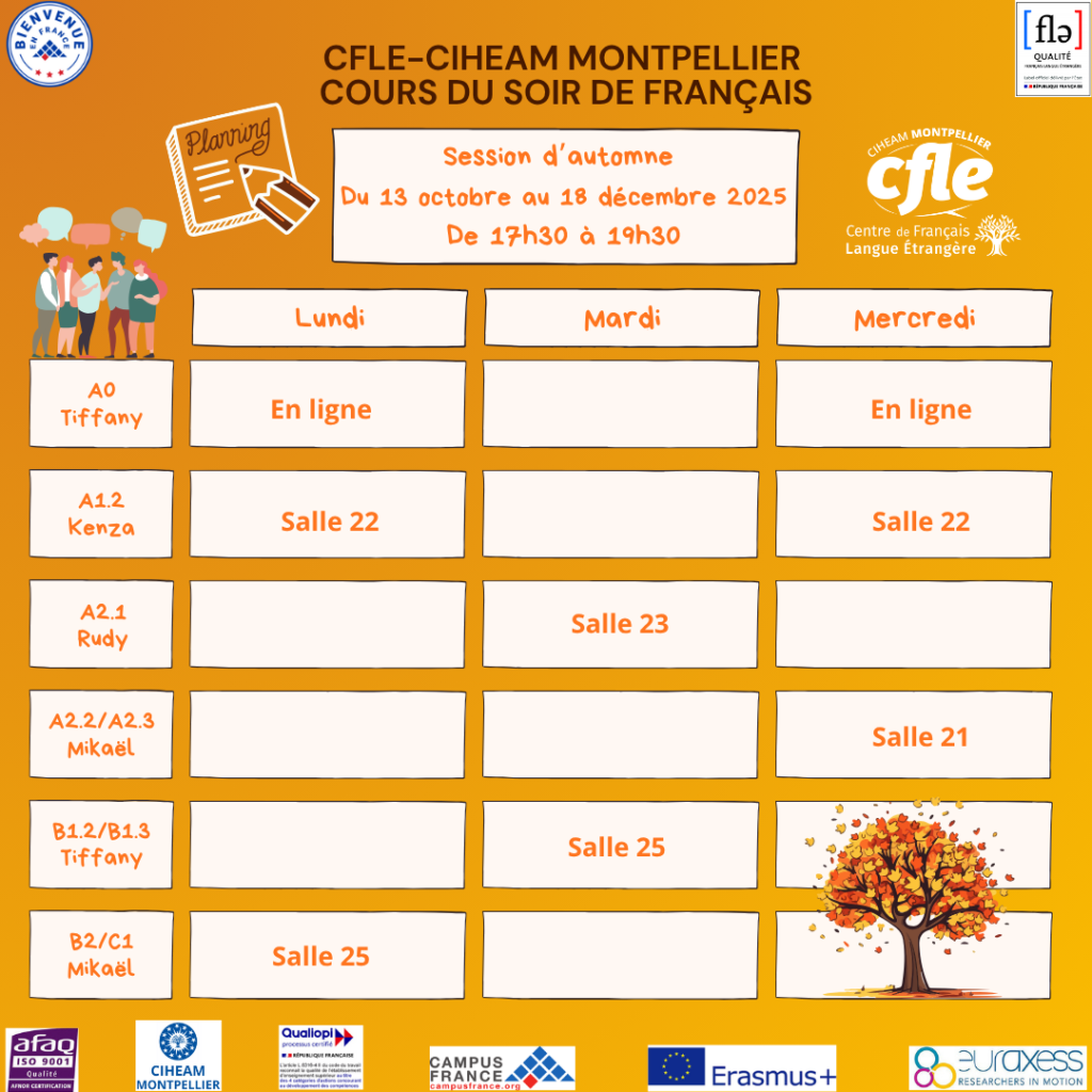 • Training Fees (registration fees included), contact us: cfle@iamm.fr